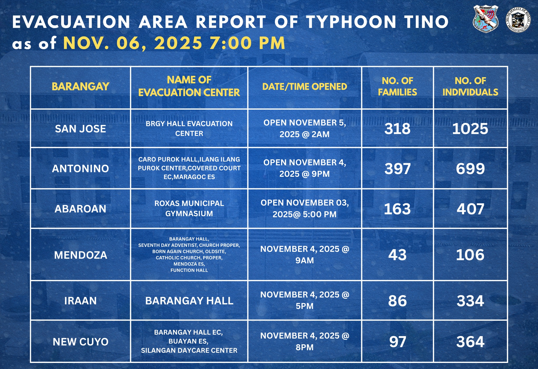 Die Landkreise nördlich von Puerto Princesa wurden jedoch schwer getroffen. Anders als Taifun Odette, der Palawan im Dezember 2021 heimgesucht und durch seine starken Winde verheerende Schäden angerichtet hatte, verursachte Kalmaegi hauptsächlich Überschwemmungen. Ganze Dörfer wurden überflutet, vor allem im Tiefland des Landkreises Roxas. Am schlimmsten betroffen war der Ort Tagumpay, wo 90 % der Bevölkerung evakuiert werden musste. Aber auch andere Orte sind schwer betroffen, insbesondere New Cuyo, Abaroan, San Jose, Mendoza und Sandoval. Auch einige Haushalte in Dumarao sind betroffen, ebenso wie Jolo und San Miguel.